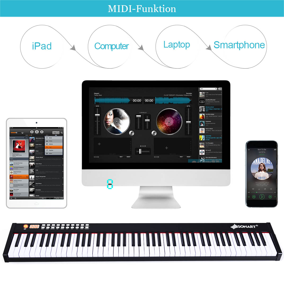 - Υψηλή συμβατότητα & πολυλειτουργικότητα: Η θύρα MIDI/USB επιτρέπει τη σύνδεση με κινητές συσκευές για καλύτερη εμπειρία εκπαίδευσης. Με 128 ρυθμούς, 128 ήχους και 20 demos, το ηλεκτρονικό πιάνο σας επιτρέπει να μάθετε δημοφιλή τραγούδια και να εξασκηθείτε σε συγχορδίες. Μπορείτε επίσης να συνδέσετε το Bluetooth του κινητού για να λάβετε περισσότερα μαθήματα.