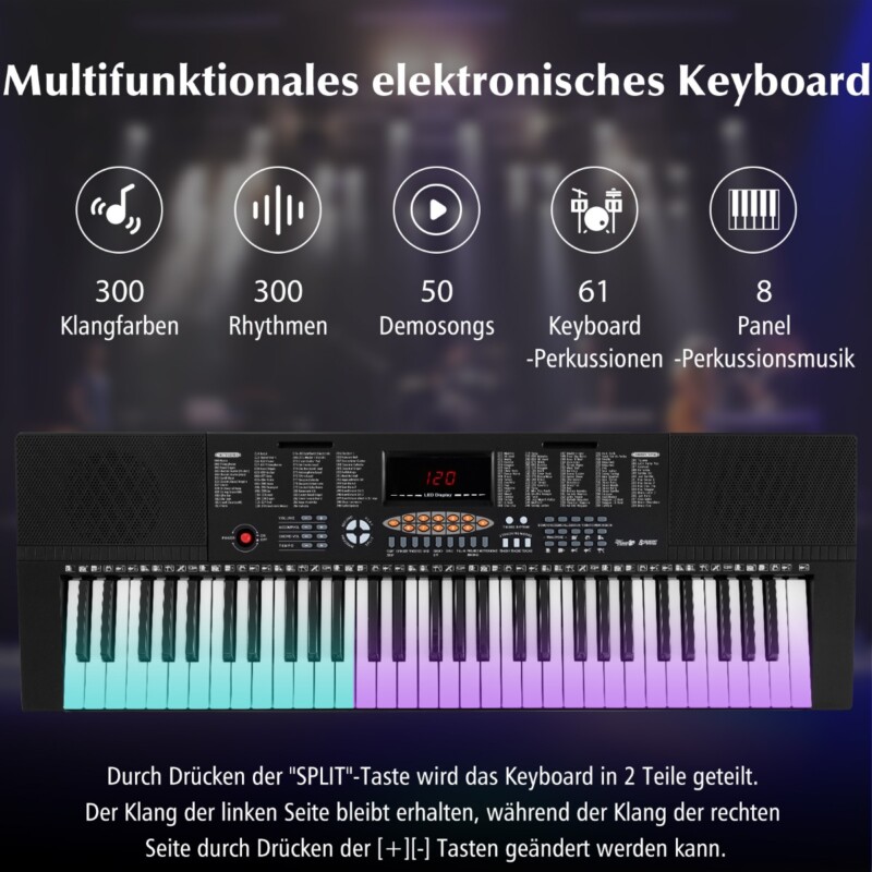 Costway Ηλεκτρονικό Πιάνο-Πληκτρολόγιο 61 Πλήκτρων με 300 Ήχους, 300 Ρυθμούς και 50 Demo Τραγούδια, με Διπλή Λειτουργία Πληκτρολογίου, 3 Λειτουργίες Εκμάθησης, Ενσωματωμένα Ηχεία και Συνδέσεις για Μικρόφωνο και Ακουστικά MU10109DE