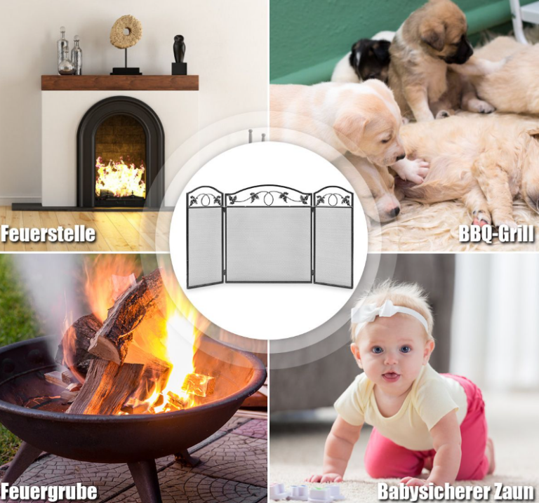 Πτυσσόμενο Προστατευτικό Τζακιού με 3 Πάνελ για Μωρά & Κατοικίδια HW54042 Costway