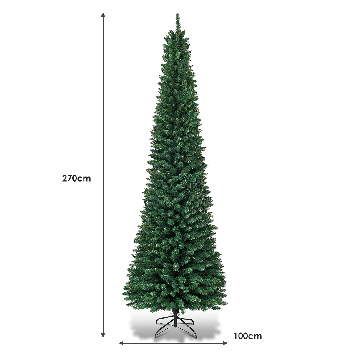 Costway 270εκ Τεχνητό Χριστουγεννιάτικο Δέντρο Πράσινο με Μεταλλική Βάση CM20657