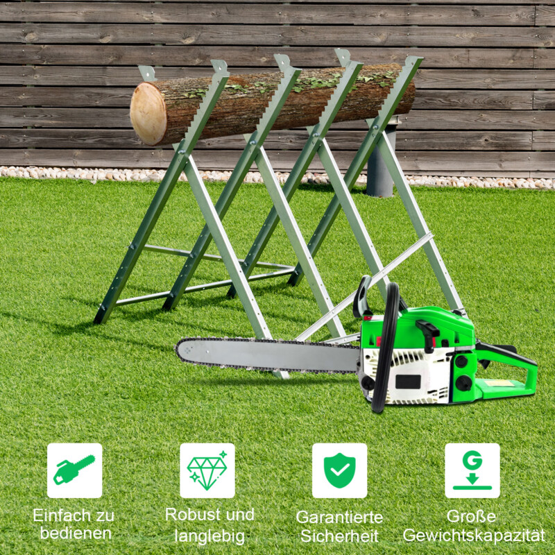 Η ξυλοπρίονα μας με οδοντωτές λεπίδες είναι ιδανική για τη στήριξη και στερέωση κορμών/ξύλων κατά την κοπή με αλυσοπρίονο. Αυτή η ανθεκτική ξυλοπρίονα είναι κατασκευασμένη από υψηλής ποιότητας χάλυβα, αρκετά ισχυρή και ανθεκτική για μακροχρόνια χρήση. Η κατασκευή για την κοπή ξύλου αντέχει έως 100 κιλά, καλύπτοντας τις ανάγκες σας κατά την κοπή ξύλων. Με τον ανθεκτικό σχεδιασμό σε σχήμα Χ, προσφέρει μια εργονομική και σταθερή εμπειρία κοπής. Επιπλέον, η φορητή ξυλοπρίονα μας διπλώνει γρήγορα σε μια συμπαγή μονάδα. Χάρη στον ελαφρύ και πτυσσόμενο σχεδιασμό, μπορείτε να την πάρετε εύκολα οπουδήποτε χρειάζεται να εργαστείτε και να εξοικονομήσετε χώρο όταν δεν τη χρειάζεστε.