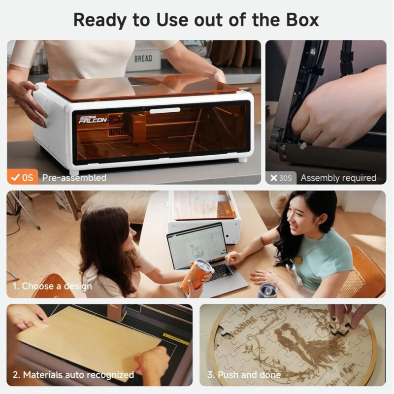 Creality Falcon A1 White – 10W Laser Engraver 305×381 Acrylic 9,6mm Wood 6mm CoreXY 600mms