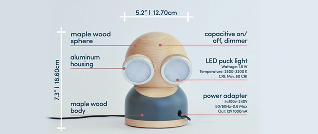 Designnest® GoggleLamp |Mr Watt| Επιτραπέζιο Φωτιστικό από ξύλο σφενδάμου και αλουμίνιο με ρύθμιση φωτεινότητας αφής (grey/blue/wood)