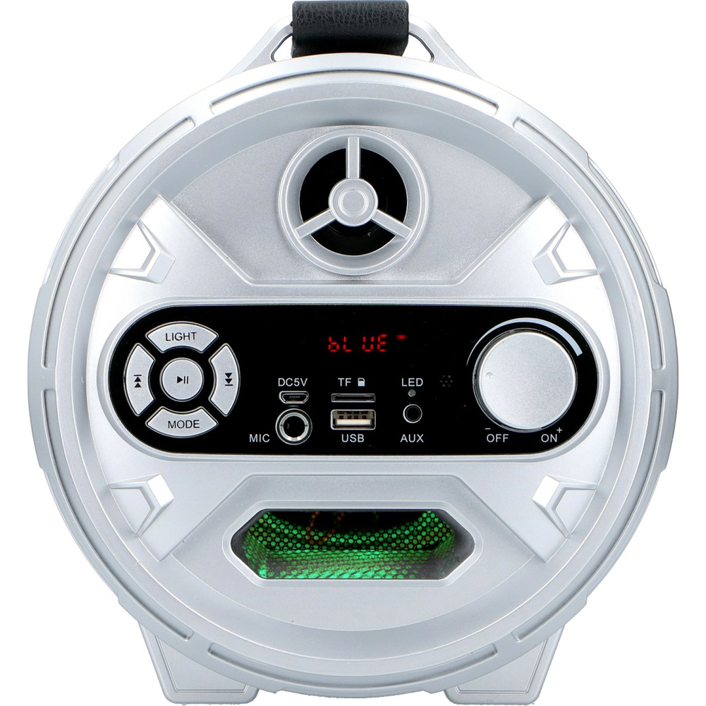 Αυτό το ηχείο δεν παράγει μόνο ήχο αλλά και φώτα! Διαθέτει ισχυρή ισχύ 20 Watt, εξασφαλίζοντας ότι η αγαπημένη σας μουσική ακούγεται πεντακάθαρα από το ηχείο. Χάρη στο πρακτικό λουράκι, μπορείτε να το πάρετε παντού μαζί σας και να απολαμβάνετε τις λίστες αναπαραγωγής σας ή το ραδιόφωνο όπου κι αν βρίσκεστε. Το φορητό αυτό ηχείο διαθέτει ευανάγνωστο πίνακα ελέγχου με οθόνη στο πλάι της συσκευής.