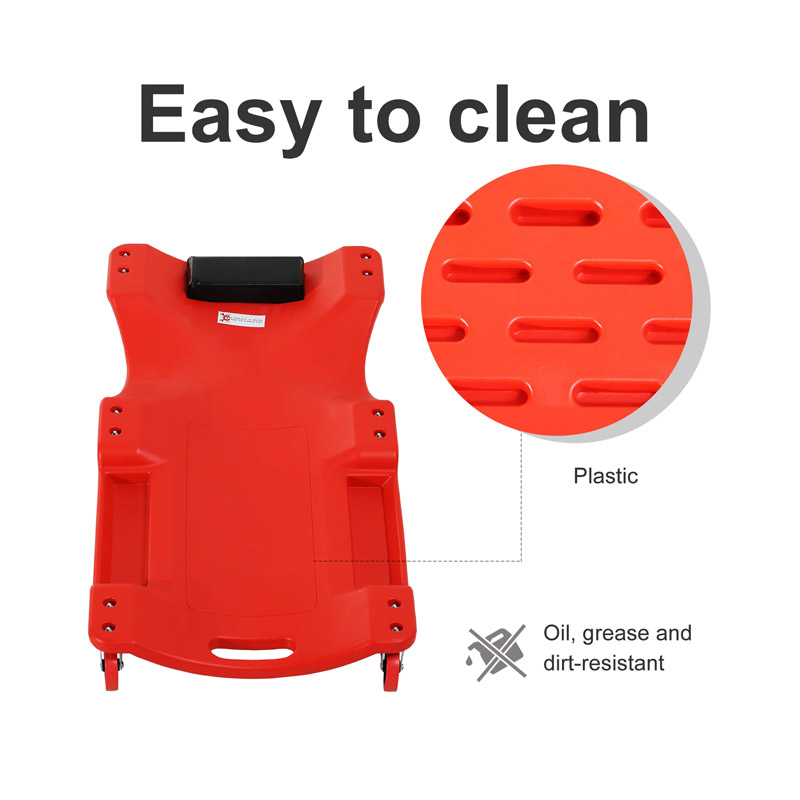Η ξαπλώστρα συνεργείου, από την εταιρία DURHAND, είναι κατασκευασμένη από ανθεκτικό πλαστικό για μακροχρόνια χρήση με εργονομικό σχεδιασμό που συμμορφώνεται με το σχήμα του σώματός σας. Διαθέτει ένα παχύ επικαλυμμένο μαξιλάρι, για να παρέχει τη σωστή υποστήριξη και να αποτρέπει τις καταπονήσεις.