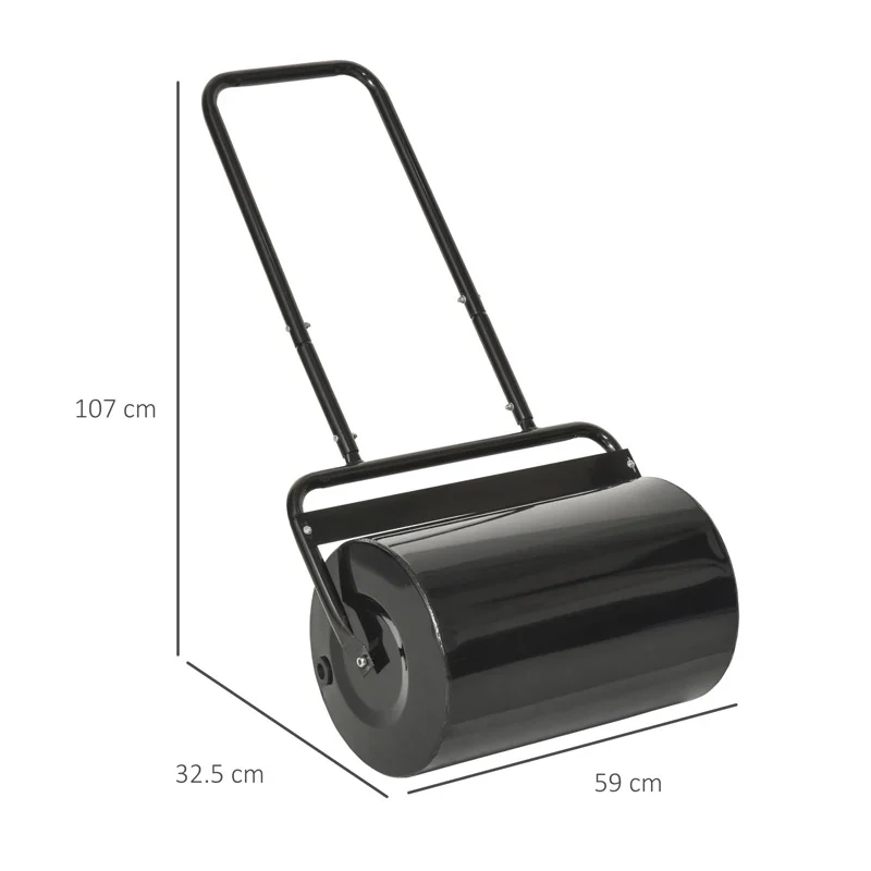 Μπορείτε να γεμίσετε τον κύλινδρο με νερό και άμμο (έως 38 Lt), μέγιστο φορτίο 62 Kg, για να φτάσετε το κατάλληλο βάρος για το έδαφος που πρέπει να ισοπεδωθεί. Το εργονομικό του σχήμα έχει σχεδιαστεί για να σας βοηθήσει ενώ εργάζεστε και μπορεί να αποσυναρμολογηθεί σε 2 μέρη για να καταλαμβάνει όσο το δυνατόν λιγότερο χώρο.
