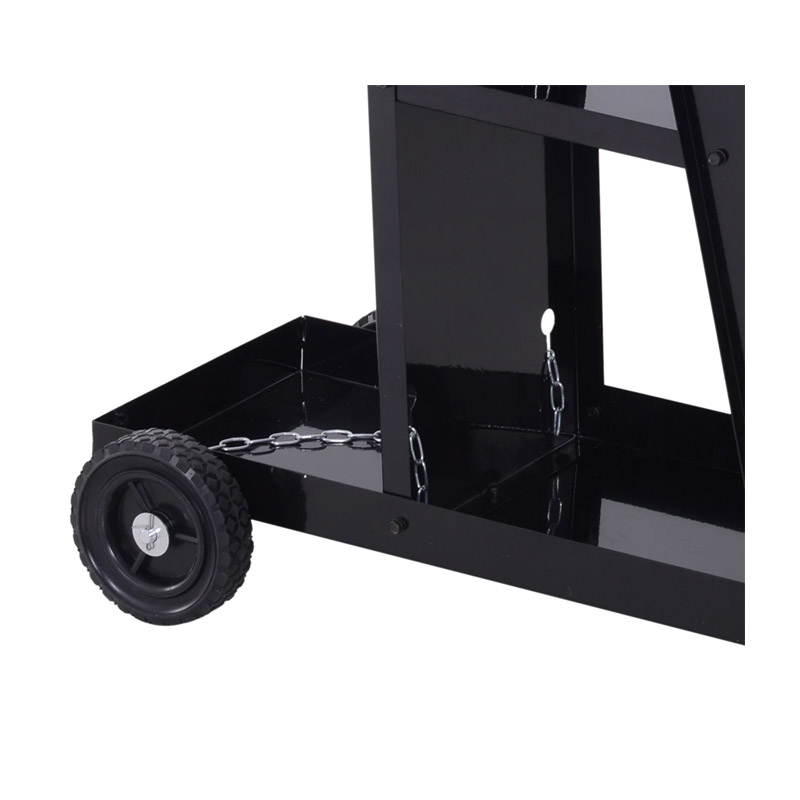 Το καρότσι, από την εταιρία DURHAND, είναι ιδανικό για την αποθήκευση και τη μεταφορά της ηλεκτροκόλληση σε ένα εργαστήριο. Είναι κατασκευασμένο από ατσάλι, διαθέτει 3 μεγάλα ράφια, αλυσίδες ασφαλείας και μπορεί να αντέξει βάρος έως 50 Kg. Οι 4 τροχοί από καουτσούκ προσδίδουν σταθερότητα και ευκολία στην κίνηση.