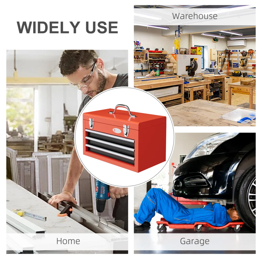DURHAND Εργαλειοθήκη με 3 συρτάρια και επάνω θήκη από ατσάλι με λαβή, 45x24x27cm, κόκκινο B20-096V00RD
