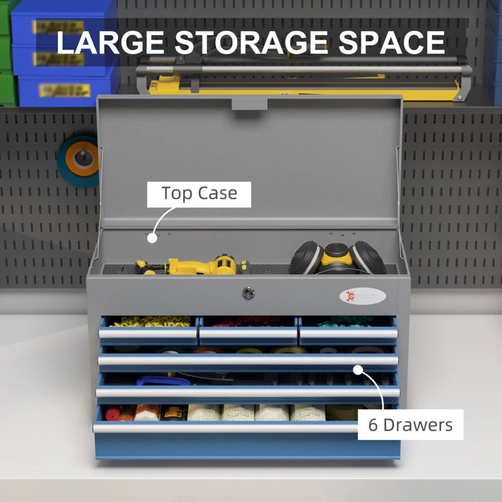 DURHAND Ατσάλινη εργαλειοθήκη με 6 συρτάρια, θήκη και 2 κλειδιά, 60x26x34 cm. Μπλε B20-098V00BU