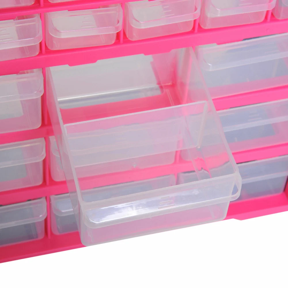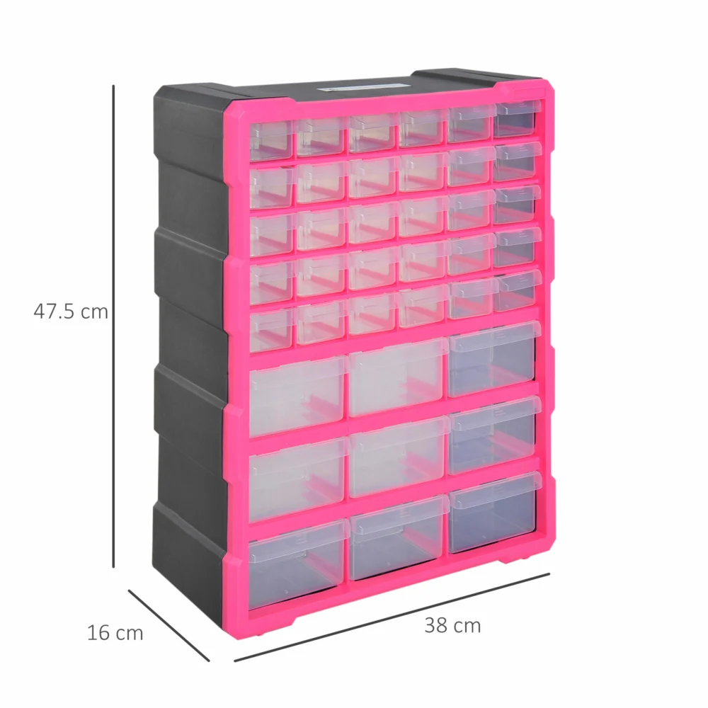 DURHAND Πλαστικό Συρτάρι Αποθήκευσης με 39 Διαφανή Συρτάρια, Τοποθέτηση στον τοίχο ή στο δάπεδο 38x16x47,5cm Ροζ B40-019