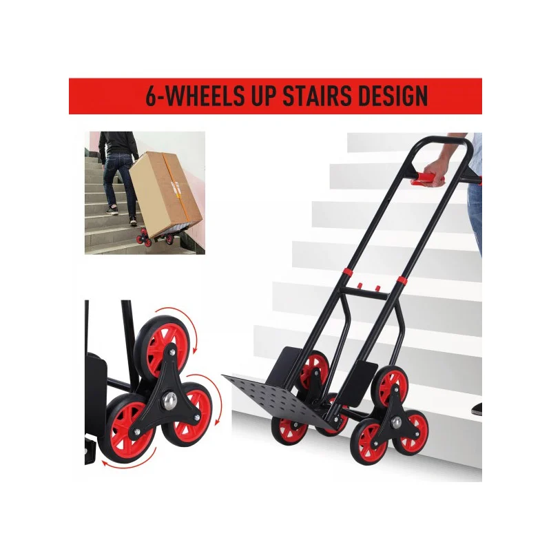 Το καρότσι είναι εξοπλισμένο με έξι συμπαγείς ρόδες, κατασκευασμένες από ισχυρό PVC, εξασφαλίζοντας εξαιρετικό κράτημα. Το υλικό από το οποίο κατασκευάζονται εγγυάται ότι δεν θα σπάσουν κατά τη μεταφορά και ότι η δομή τους προσαρμόζεται τέλεια στην επιφάνεια. Για ακόμα μεγαλύτερη ασφάλεια, χρησιμοποιήθηκε μεταλλικό κάλυμμα, το οποίο βελτιώνει τη σταθερότητα του μεταφερόμενου φορτίου. Οι λαβές του έχουν καλυφθεί με αντιολισθητικό υλικό, διευκολύνοντας τον χειρισμό του και διαθέτουν προστασία για τα χέρια, ειδικά για τα δάκτυλα, τα οποία συχνά εκτίθενται σε διάφορες εκδορές κατά τη διάρκεια της μεταφοράς.