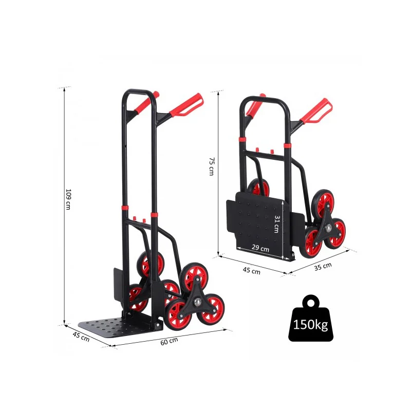 Το καρότσι μεταφοράς, από την εταιρία DURHAND, επιτρέπει την άνετη και ασφαλή μεταφορά φορτιών, σε ανώμαλες επιφάνειες και επίπεδες επιφάνεια, ακόμα και σε σκάλες. Διαθέτει μεγάλη πλατφόρμα φόρτωσης με ανάγλυφη υφή (αντιολισθητική) που θα σας επιτρέψει να μεταφέρετε φορτία μέχρι 200 Kg. Έχει ρύθμιση του ύψους σε δύο επίπεδα, γεγονός που του επιτρέπει να προσαρμόζεται στο ύψος του εκάστοτε χρήστη.