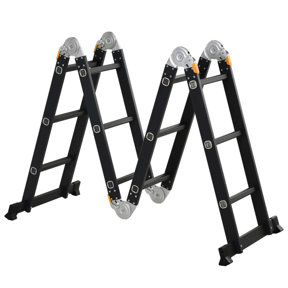 DURHAND Μαύρη σκάλα αλουμινίου 5 σε 1 για εσωτερικούς και εξωτερικούς χώρους, Μέγιστο Φορτίο 150 kg, 370x61x11 cm B72-029