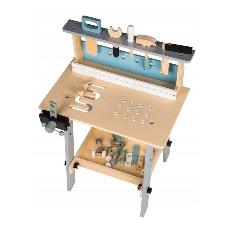 Ο ξύλινος παιδικός πάγκος εργασίας, από την εταιρία Ecotoys, βοηθά το παιδί να αναπτύσσει τη φαντασία του παίρνοντας το ρόλο ενός πραγματικού μάστορα. Εκπαιδεύει αυτό ώστε να λειτουργεί μέσα στο σύνολο ενώ ταυτόχρονα μαθαίνει να οριοθετεί το χώρο του κάνοντας μαστορέματα πάνω στο πάγκο.