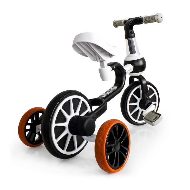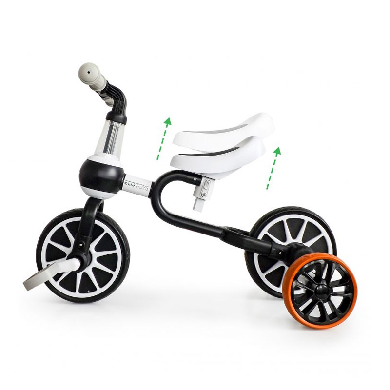 Το ποδήλατο ισορροπίας 4 σε 1, από την εταιρία Ecotoys, δημιουργήθηκε με γνώμονα τη λειτουργικότητα και την ασφάλεια. Η σέλα μπορεί να ρυθμιστεί σε δύο επίπεδα ύψους. Το τιμόνι είναι εξοπλισμένο με αντιολισθητικές λαβές, χάρη στις οποίες τα παιδιά μπορούν να το κρατούν χωρίς να κινδυνεύουν να γλιστρήσουν. Οι τροχοί προπόνησης με απόσταση 37 cm θα βοηθήσουν τα παιδιά να έχουν σταθερότητα. Οι τροχοί είναι κατασκευασμένοι από υλικό EVA – ανθεκτικό στη διάτρηση. Έτσι τα παιδιά μπορούν να κάνουν ποδήλατο τόσο σε εσωτερικούς όσο και σε εξωτερικούς χώρους.