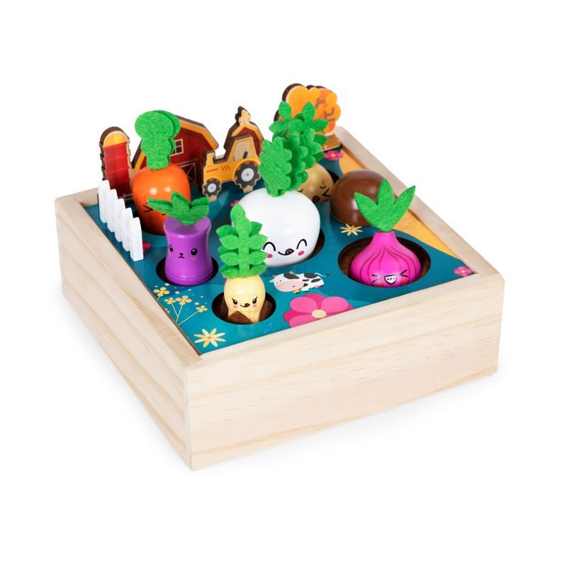 Το παιχνίδι περιλαμβάνει την τοποθέτηση λαχανικών στα σωστά σημεία, κατά τη διάρκεια των οποίων μπορείτε να πείτε στο μικρό σας πώς μεγαλώνουν, τη γεύση και την εμφάνιση των λαχανικών. Το καπάκι του τελάρου ανοίγει, ώστε το παιδί να μπορεί να αποθηκεύσει λαχανικά από το σετ σε αυτό ή να χρησιμοποιήσει το κουτί ως δοχείο για τους θησαυρούς του.