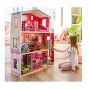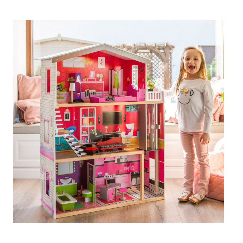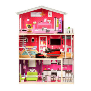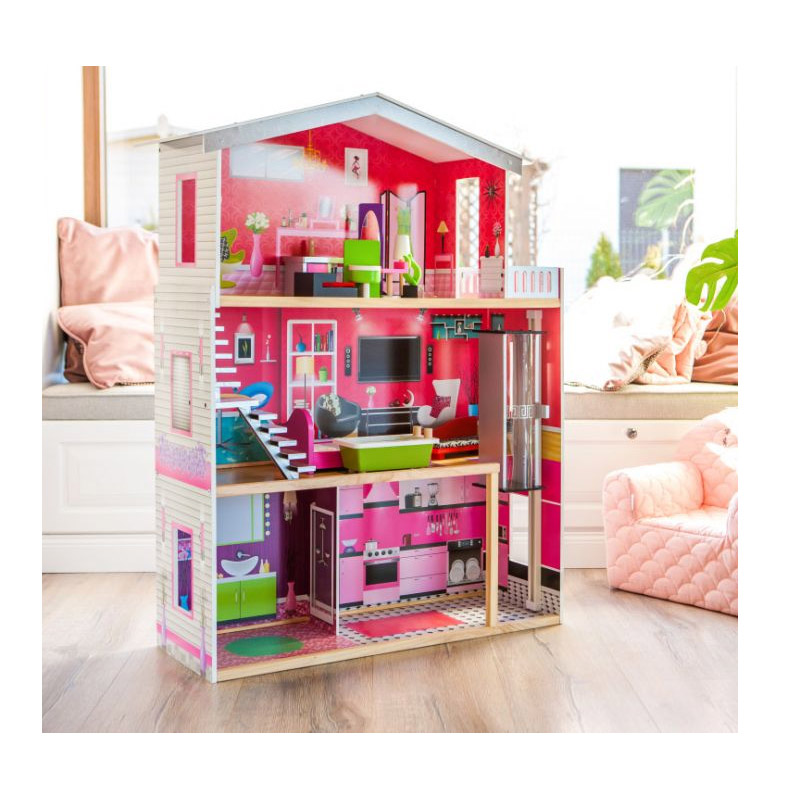 Το κουκλόσπιτο, από την εταιρία Ecotoys, είναι κατασκευασμένο από ξύλο και σανίδα MDF. Χωρίζεται σε 3 ανεξάρτητους ορόφους, οι οποίοι συνδέονται με κινούμενο ανελκυστήρα και σκάλες. Υπάρχουν 4 ξεχωριστά δωμάτια και καθένα από αυτά είναι σχεδιασμένο σε διαφορετικό στυλ.