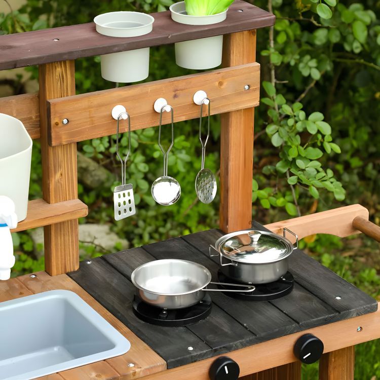 H παιδική κουζίνα από ξύλο ελάτης, από την εταιρεία Ecotoys, είναι ένα εξαιρετικό παιχνίδι για μικρούς σεφ που αναπτύσσει τη φαντασία και τις χειρωνακτικές δεξιότητες. Κατασκευασμένο από οικολογικό υλικό, είναι ανθεκτικό και αισθητικά ευχάριστο . Η κουζίνα είναι εξοπλισμένη με ρεαλιστικά στοιχεία όπως φούρνο, εστίες και νεροχύτη, γλάστρες ακόμα και ένα εργαλείο κήπου, πράγμα που σημαίνει ότι τα παιδιά μπορούν να παίζουν με απόλυτη ασφάλεια . Ιδανικό για παιχνίδι στο σπίτι και σε εξωτερικούς χώρους, ενθαρρύνει τη δημιουργικότητα και το μακρύ, συναρπαστικό παιχνίδι. Η κουζίνα έχει επίσης ρόδες και χερούλι που διευκολύνουν τη μετακίνηση.
