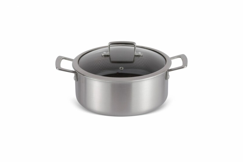 Μεγάλη αντοχή σε γρατζουνιές και υψηλές θερμοκρασίες έως 180°C. Η κατσαρόλα καθαρίζεται εύκολα, κάνοντάς την ιδανική επιλογή για καθημερινή χρήση.