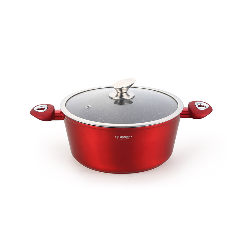 Το σετ, από την εταιρία Edenberg, αποτελείται από μαγειρικά σκεύη κατασκευασμένα από συμπιεσμένο αλουμίνιο, με εσωτερική αντικολλητική κεραμική μαρμάρινη επίστρωση, χωρίς PFOA. Ο ελαφρύς σχεδιασμός παρέχει εξαιρετική αγωγιμότητα θερμότητα και είναι ανθεκτικά στις γρατζουνιές και τις υψηλές θερμοκρασίες.