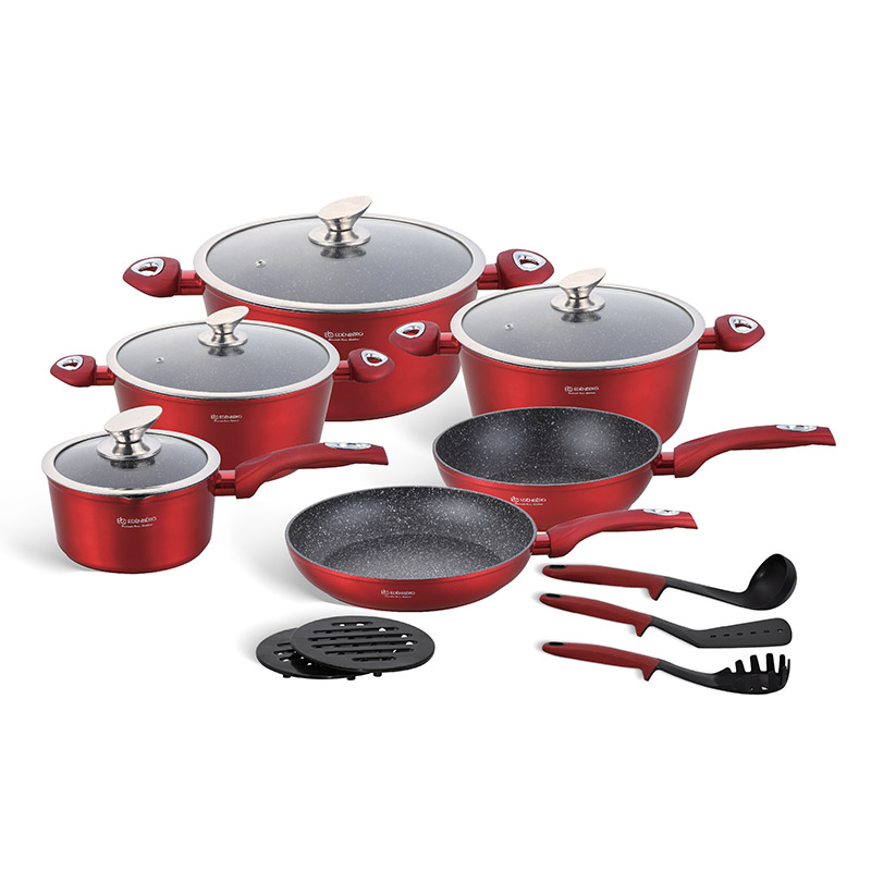 Σετ Μαγειρικών Σκευών με Αντικολλητική Κεραμική Μαρμάρινη Επίστρωση 15 τμχ Χρώματος Κόκκινο Edenberg EB-5612