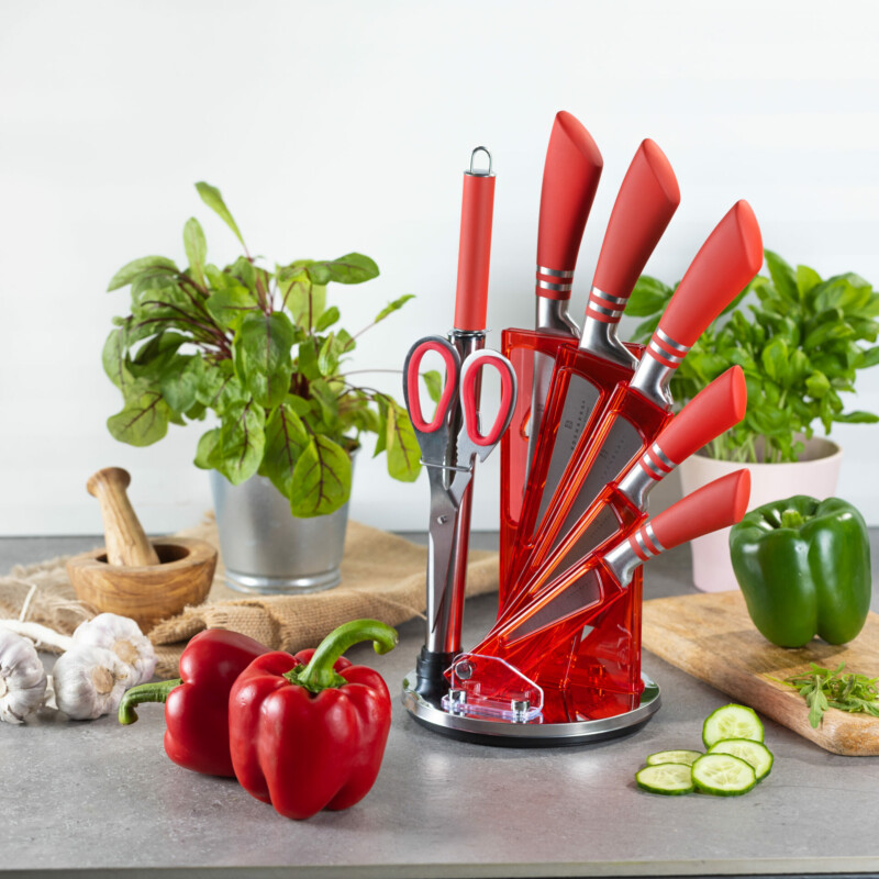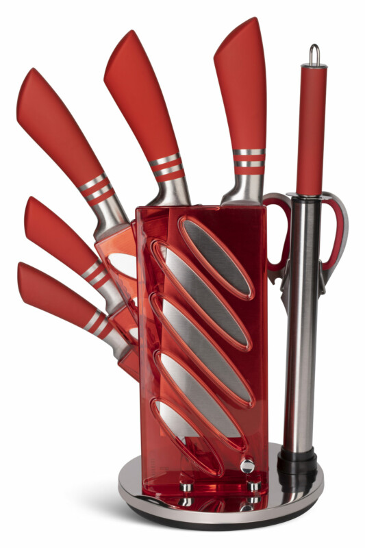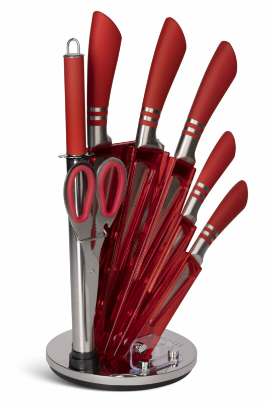 Edenberg Σετ 8τμχ μαχαίρια από Ανοξείδωτο Ατσάλι με Περιστρεφόμενη Βάση Στήριξης Κοκκίνο EB-907