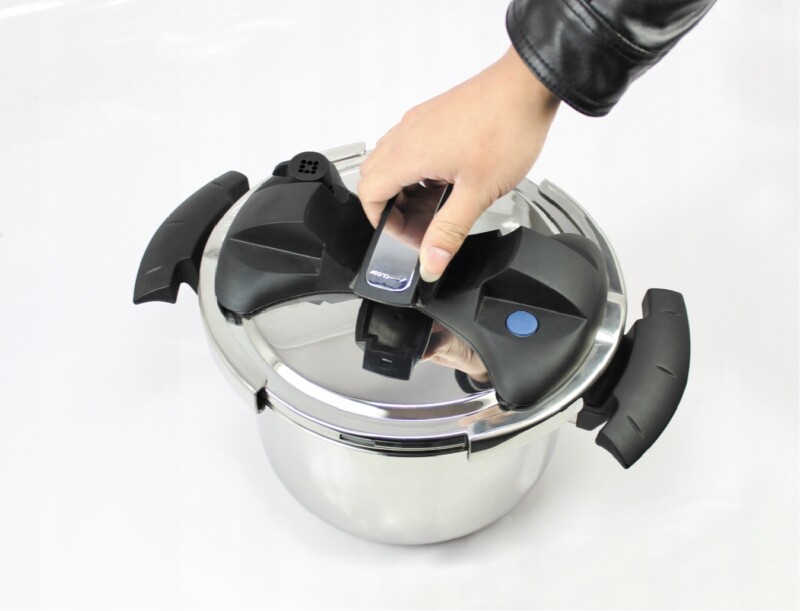 Ο προηγμένος σύστημα ασφαλείας περιλαμβάνει βαλβίδα περιορισμού πίεσης, βαλβίδα ασφαλείας, δείκτη πίεσης και ανθεκτική περιστρεφόμενη λαβή, προσφέροντας πλήρη έλεγχο και άνεση κατά το μαγείρεμα. Η ελαστική σφραγίδα και ο μηχανισμός σύσφιξης εξασφαλίζουν στεγανότητα, διατηρώντας τα θρεπτικά συστατικά και τα αρώματα στα φαγητά σας.