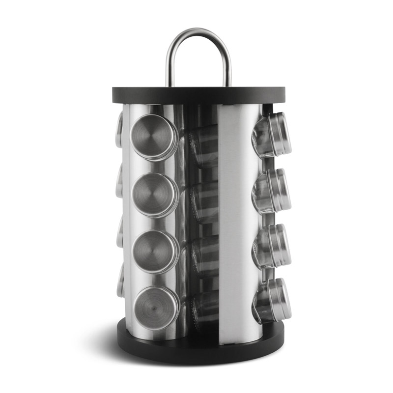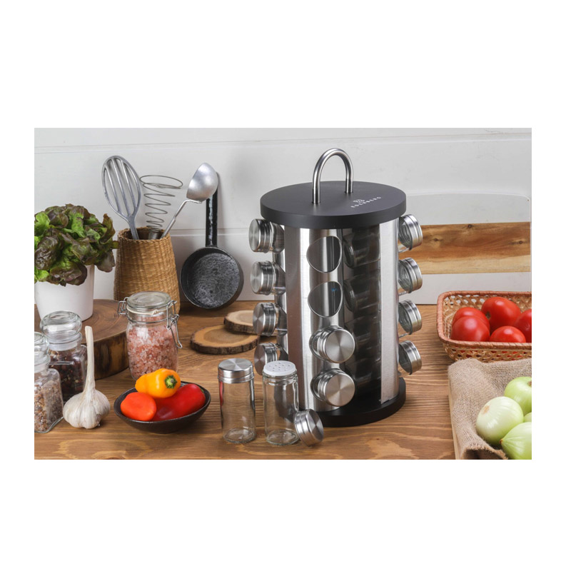 Το σετ, από την εταιρία Edenberg, περιλαμβάνει 16 γυάλινα δοχεία για διάφορα μπαχαρικά με καπάκια από ατσάλι και 1 περιστρεφόμενη βάση. Η βάση είναι κατασκευασμένη από υψηλής ποιότητας ατσάλι με ξύλο στο πάνω και κάτω μέρος και πρακτική λαβή στην κορυφή. Θα έχετε απολύτως οργανωμένα τα αγαπημένα σας μπαχαρικά και θα εξοικονομείτε σημαντικό χρόνο στην προετοιμασία ή το σερβίρισμα του γεύματος.