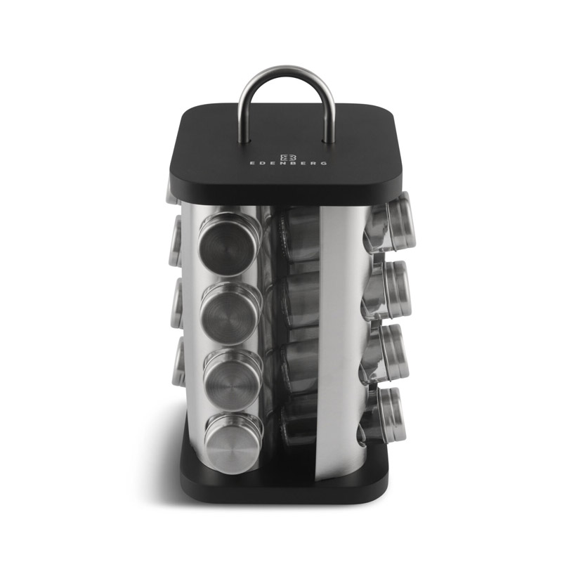 Σετ Δοχεία Μπαχαρικών με Περιστρεφόμενη Βάση 17 τμχ Χρώματος Μαύρο Edenberg EB-4029