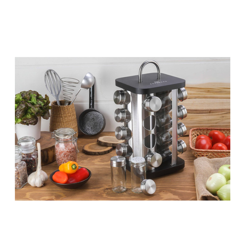 Το σετ, από την εταιρία Edenberg, περιλαμβάνει 16 γυάλινα δοχεία για διάφορα μπαχαρικά με καπάκια από ατσάλι και 1 περιστρεφόμενη βάση. Η βάση είναι κατασκευασμένη από υψηλής ποιότητας ατσάλι με ξύλο στο πάνω και κάτω μέρος και πρακτική λαβή στην κορυφή. Θα έχετε απολύτως οργανωμένα τα αγαπημένα σας μπαχαρικά και θα εξοικονομείτε σημαντικό χρόνο στην προετοιμασία ή το σερβίρισμα του γεύματος.