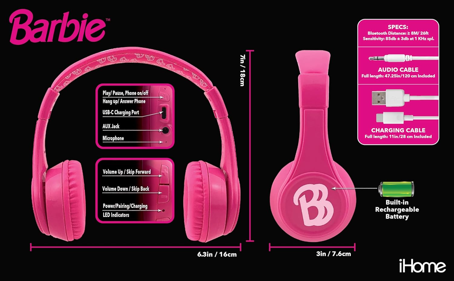 eKids Mattel Barbie Ασύρματα Ακουστικά με ασφαλή μέγιστη ένταση ήχου για παιδιά και εφήβους (MI-B52BE) (Ροζ)