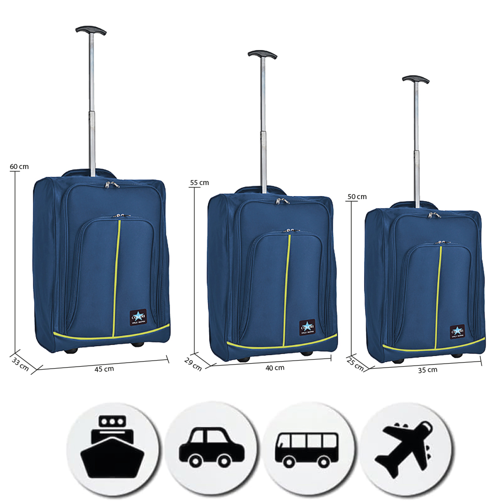 Τεμάχιο: 1 x Σετ 3 Μαλακές Βαλίτσες Τροχήλατες Ταξιδίου Μπλε και Πράσινο, Χειραποσκευή 50-55-60 εκ.