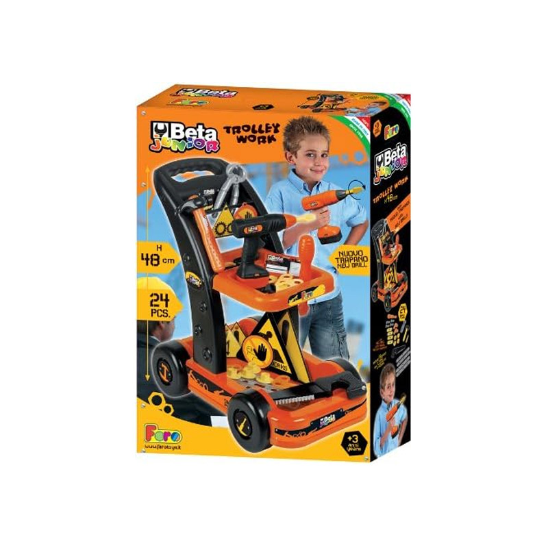 Το παιδικό τρόλεϊ εργασίας, από την εταιρία Faro, βοηθά το παιδί να αναπτύσσει τη φαντασία του παίρνοντας το ρόλο ενός πραγματικού μάστορα. Χάρη στους άνετους τροχούς, μπορεί να μεταφερθεί εύκολα οπουδήποτε.