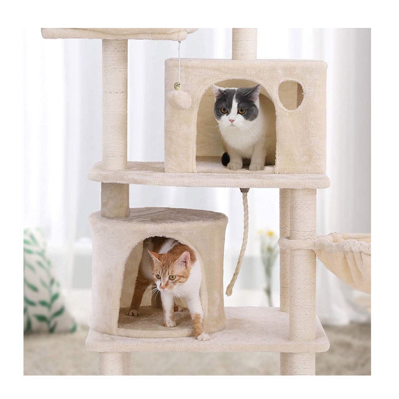 Το δέντρο, στηρίζεται από σωλήνες κατασκευασμένοι από συμπιεσμένο χαρτόνι υψηλής πυκνότητας, οι οποίοι μπορούν να συγκρατήσουν τις πλατφόρμες σταθερές και χωρίς ταλάντωση. Το φυσικό σχοινί σιζάλ είναι πολύ ανθεκτικό αλλά αρκετά ισχυρό για να αντέχει σε συνεχείς γρατζουνιές, ικανοποιώντας τα ένστικτα της γάτας σας. Διαθέτει 2 σπιτάκια, 4 πλατφόρμες και 2 κρεμαστές μπάλες για παιχνίδι.