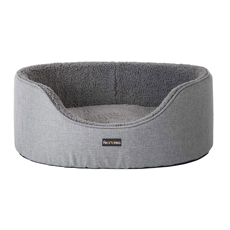 Το κρεβάτι για σκύλους, από την εταιρία Feandrea, είναι κατασκευασμένο από υψηλής ποιότητας υλικά και είναι ιδανικό για την ξεκούραση, τη χαλάρωση και τον ύπνο του κατοικιδίου σας. Έχει στρώμα αφρού, που προσαρμόζεται στο σώμα του σκύλου σας και καταπραΰνει τις αρθρώσεις του. Διαθέτει αφαιρούμενο, αναπαυτικό μαξιλάρι διπλής όψης, με λινό ύφασμα από τη μία και ύφασμα fleece από την άλλη. Επιπλέον καθαρίζεται πολύ εύκολα, καθώς το κάλυμμα του κρεβατιού μπορεί να αφαιρεθεί και να τοποθετηθεί άνετα στο πλυντήριο.