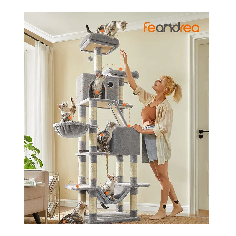 To δέντρο γάτας – ονυχοδρόμιο, από την εταιρία Feandrea, αποτελεί ιδανική επιλογή για την καλή υγεία και την ευεξία της γάτας. Κατασκευασμένο με ποιοτική μοριοσανίδα, εξοπλισμένο με μεγάλη βάση με ενισχυμένες ράβδους στο κάτω μέρος και σφαλισμένο με κιτ προστασίας από ανατροπή, είναι σταθερό και ασφαλές για έως και 6 γάτες (μέγ. 7 κιλά η καθεμία).