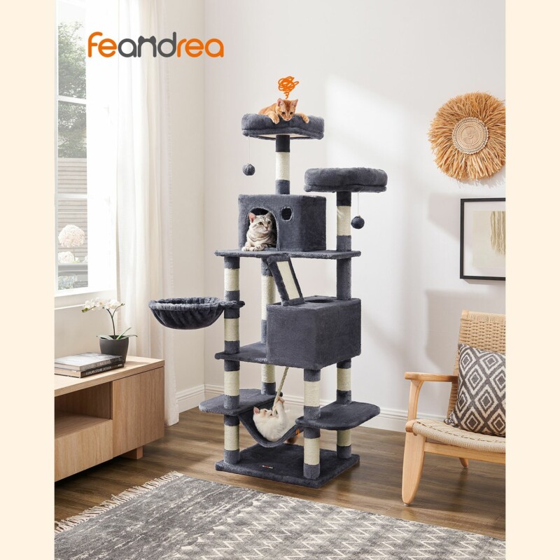 Δέντρο Γάτας – Ονυχοδρόμιο Πολλαπλών Επιπέδων ‘Υψους 168 εκ. Γκρι PCT165G01 Feandrea