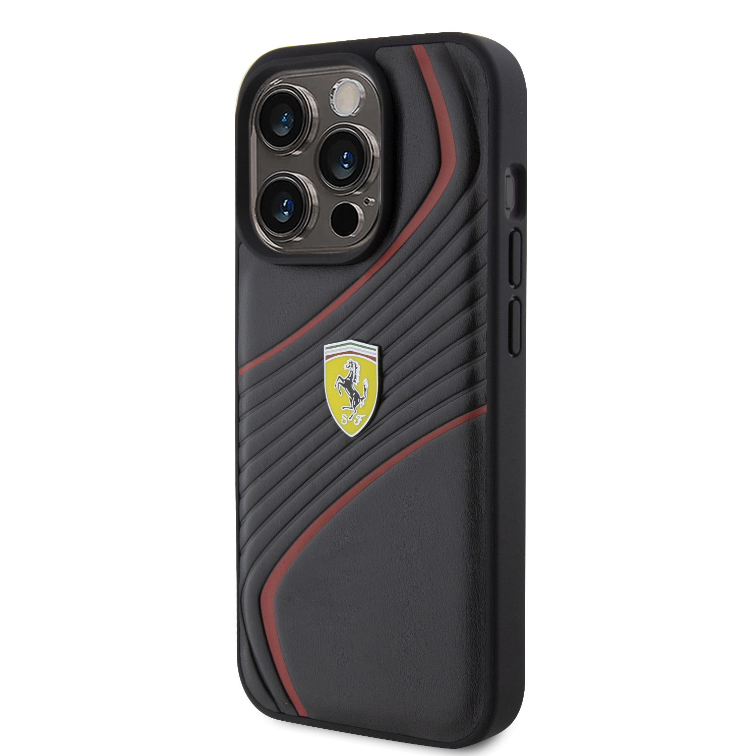 Ferrari Twist Metal Logo Hard Case Θήκη προστασίας από δερματίνη – iPhone 15 Pro (Black – FEHCP15LPTWK)