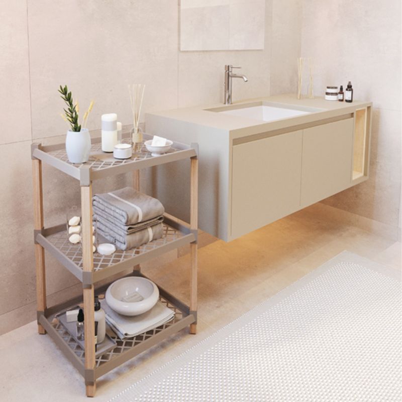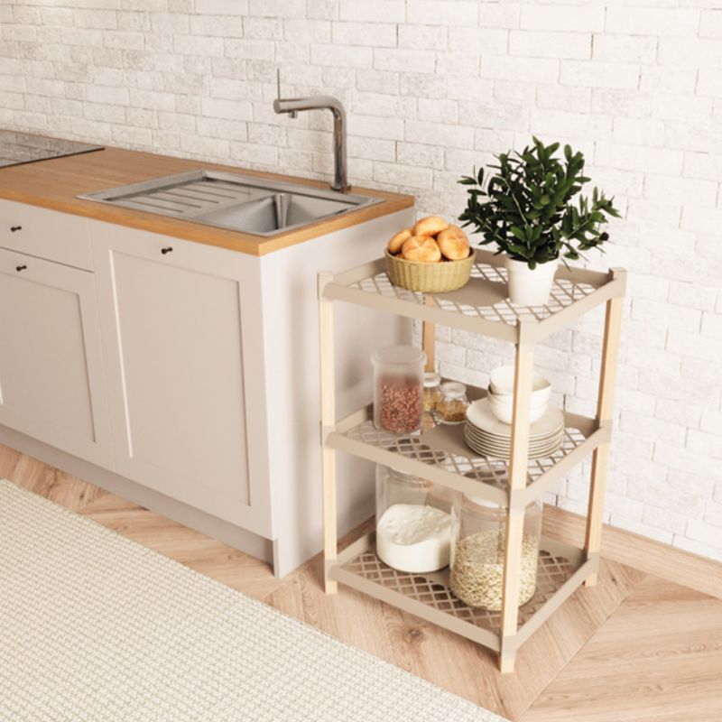 Ραφιέρα δαπέδου πλαστική – ξύλινη χρώμα φυσικό – μπεζ 45x38x79εκ.