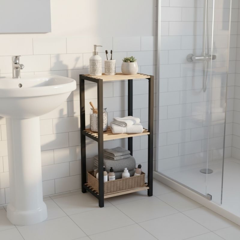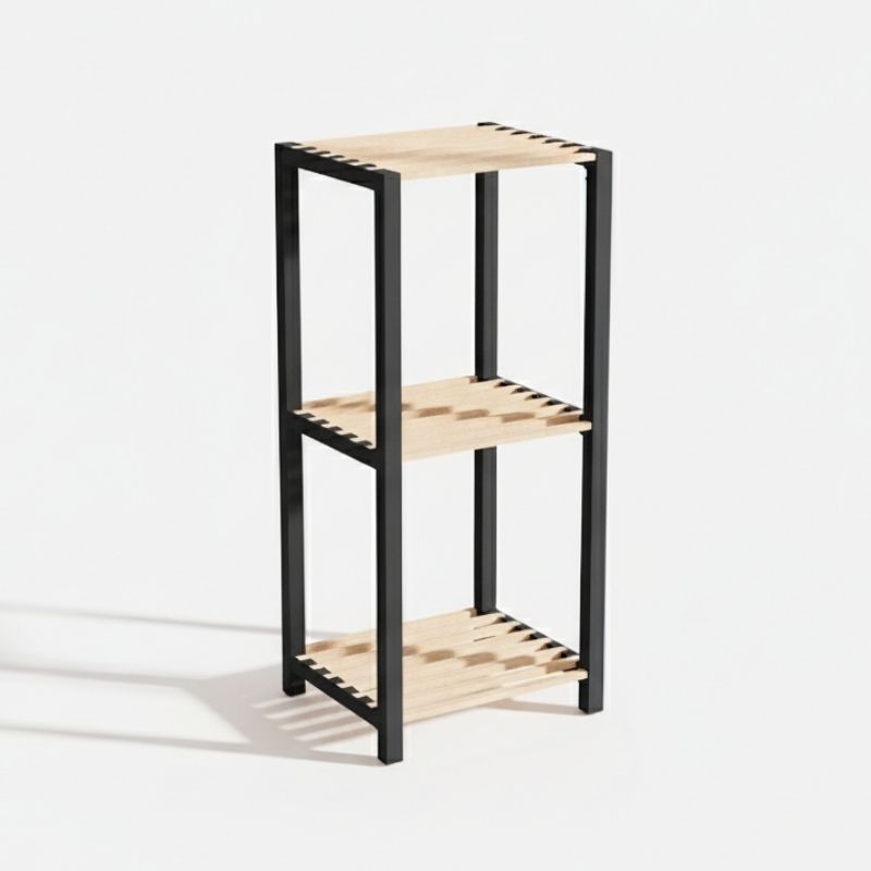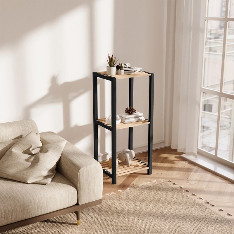 Ραφιέρα δαπέδου – Κομοδίνο ξύλινο – πλαστικό χρώμα φυσικό – μαύρο 37x29x79εκ.