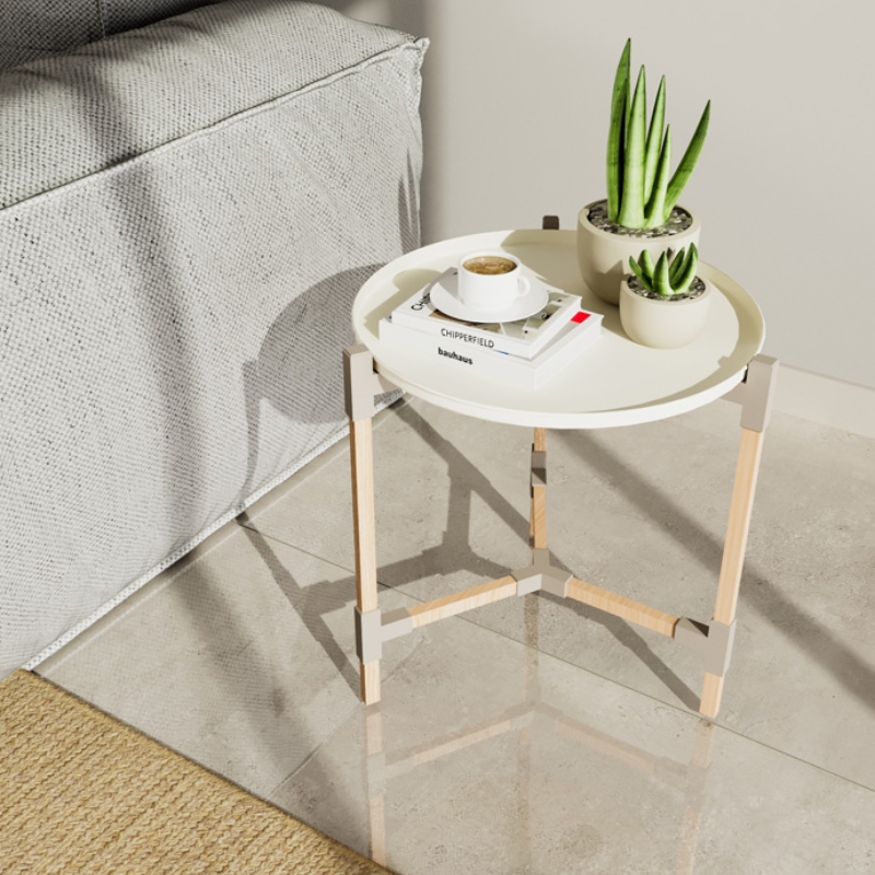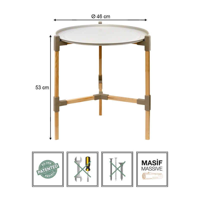 Τραπεζάκι βοηθητικό ξύλινο – πλαστικό χρώμα μπεζ Φ46×53εκ.
