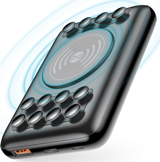Το Powerbank της Forever με βεντούζες σταθεροποίησης και χωρητικότητα 10000mAh που μπορεί να προσφέρει περίπου 2 φορτίσεις σε ένα συνηθισμένο κινητό τηλέφωνο. Το ότι μπορείς να το “κόλλησεις” με βεντούζες στο πίσω μέρος του τηλεφώνου για ασύρματη φόρτιση είναι πρακτικό — κρατά σταθερή επαφή και δεν χρειάζεται να στέκεσαι με καλώδιο κάθε φορά.