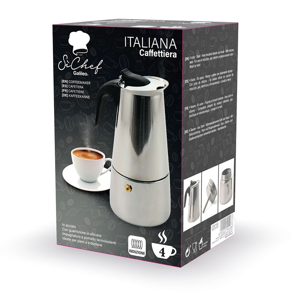 Galileo Καφετιέρα 4 Φλιτζανιών από Ανοξείδωτο Χάλυβα για Επαγωγικές Εστίες SChef 2191193