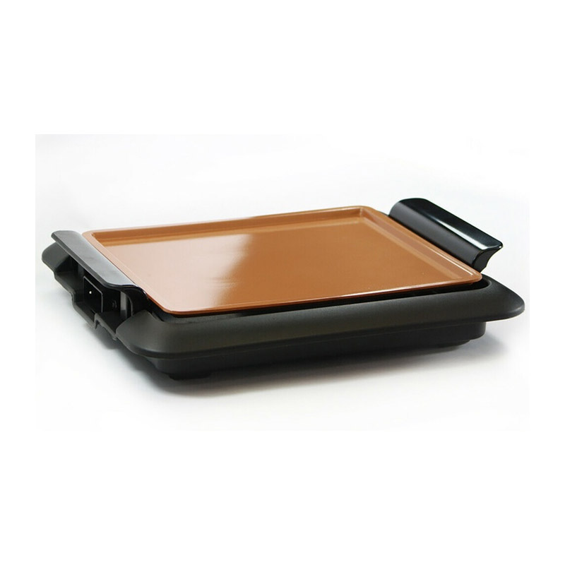 Η ψηστιέρα – γκριλιέρα, είναι εξοπλισμένη με κεραμική επίστρωση για ομοιόμορφη κατανομή της θερμότητας, καθώς και αφαιρούμενο δίσκο για τη συλλογή του λίπους. Περιλαμβάνει 1 δίσκο κάτω από τη σχάρα, ο οποίος δεν θερμαίνεται, με αποτέλεσμα να μη δημιουργείται καπνός κατά το ψήσιμο.