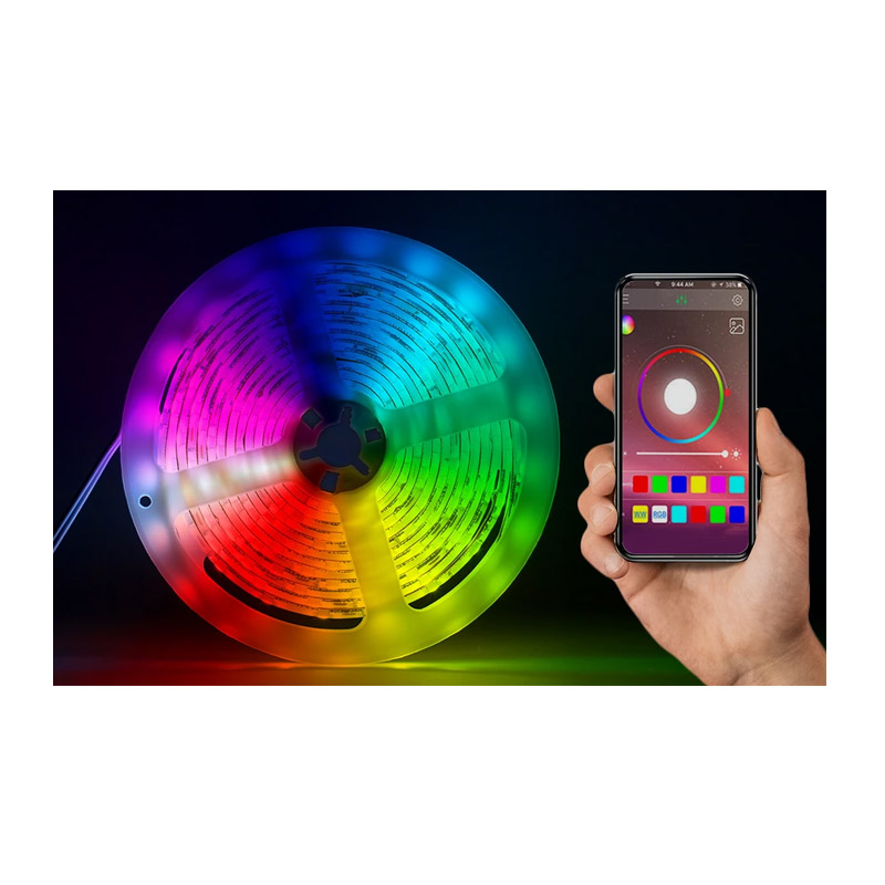 Η αυτοκόλλητη ταινία LED, από την εταιρία GloBrite, με 16 εκατομμύρια χρώματα, λειτουργία μουσικής και ενσωματωμένο μικρόφωνο είναι ιδανική για κουζίνες, διάδρομους και άλλα σημεία. Μπορείτε επίσης να ρυθμίσετε τη φωτεινότητα του φωτός από 1% έως 100% για να ταιριάζει στα διάφορα μέρη. Έχει μήκος 5 m και διαθέτει 150 LED φώτα.