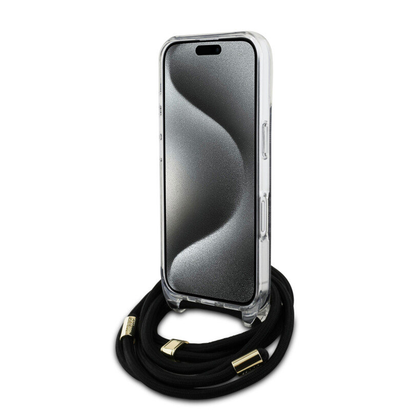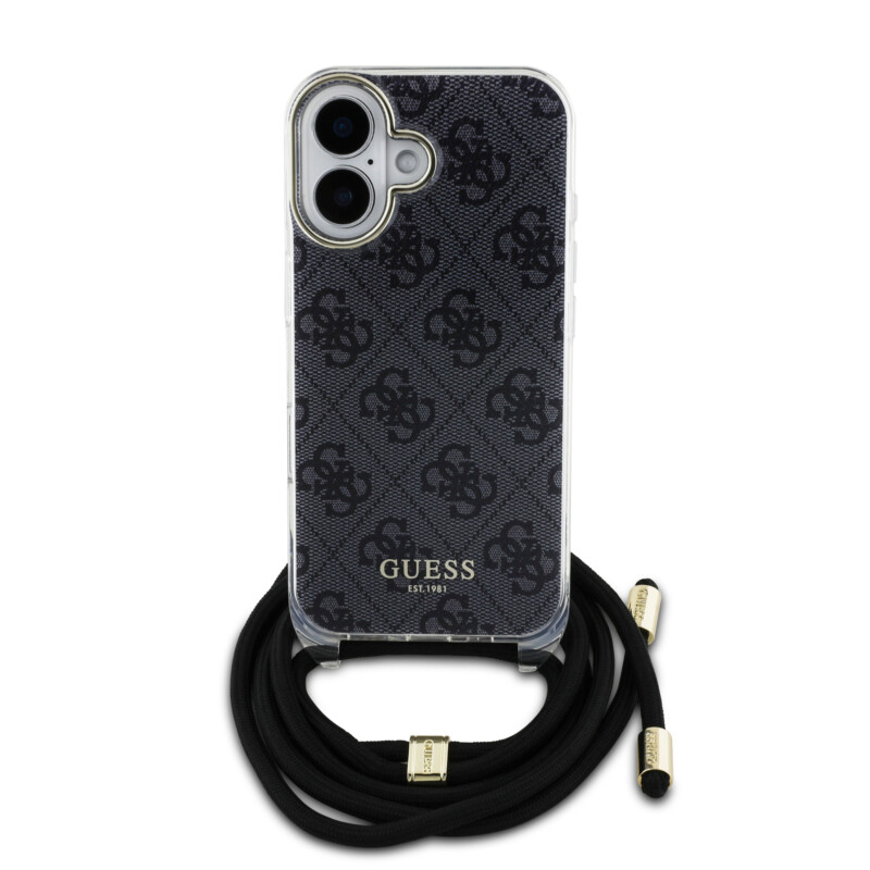 Guess “4G Logo Collection” Crossbody Hard Case Script Metal Logo Θήκη προστασίας από σιλικόνη με λουράκι – iPhone 16 (Μαύρο – GUHCP16SHC4SEK)