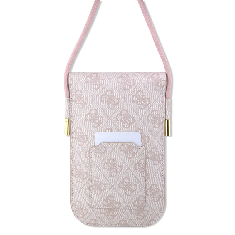 Guess “4G Logo Collection” Script Metal Logo Pouch with cord Τσαντάκι κατάλληλο για smartphone Small / Medium (170x95mm) με κορδονάκι (Pink – GUOWBP4SNSP)