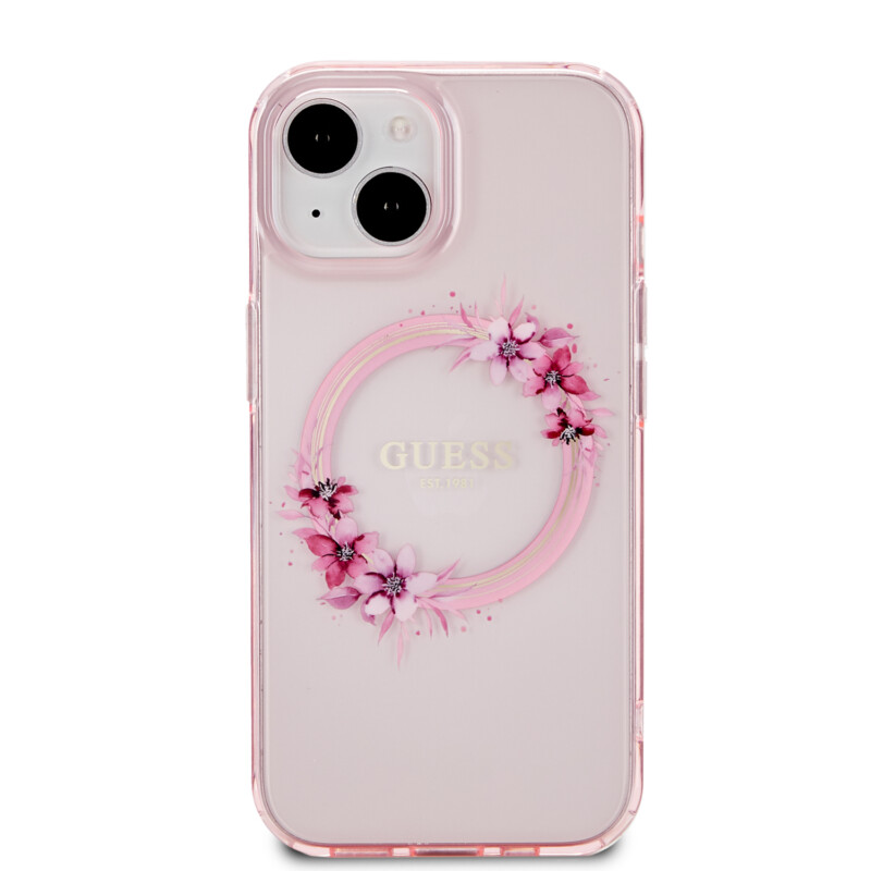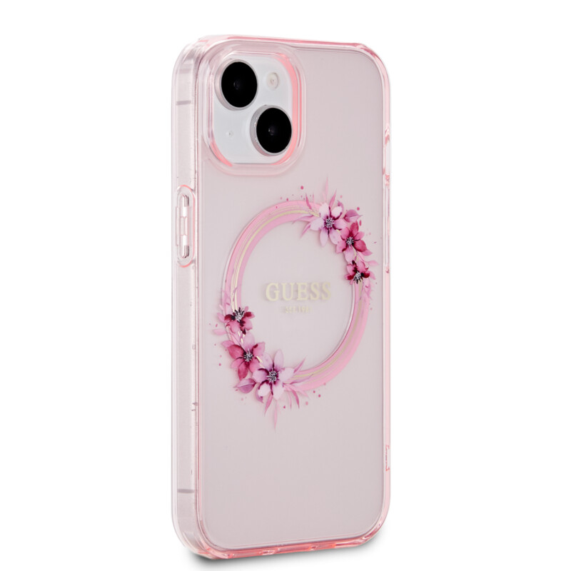 Guess “Flowers Wreath Collection” MagSafe Hard Case Θήκη προστασίας από σκληρό πλαστικό – iPhone 15 (Ροζ – GUHMP15SHFWFCP)