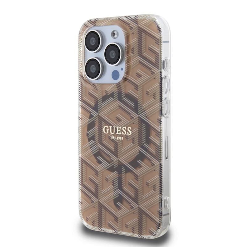 Guess “Gcube Stripes Collection” MagSafe Hard Case Θήκη προστασίας από σκληρό πλαστικό – iPhone 15 Pro Max (Καφέ – GUHMP15XHGCUSTGW)