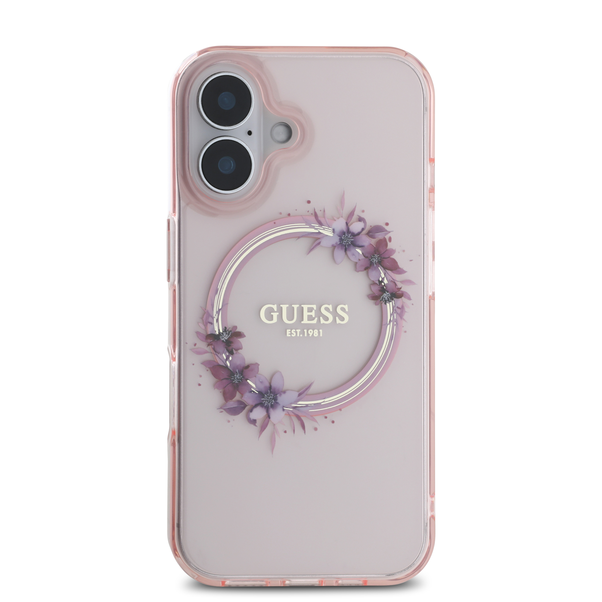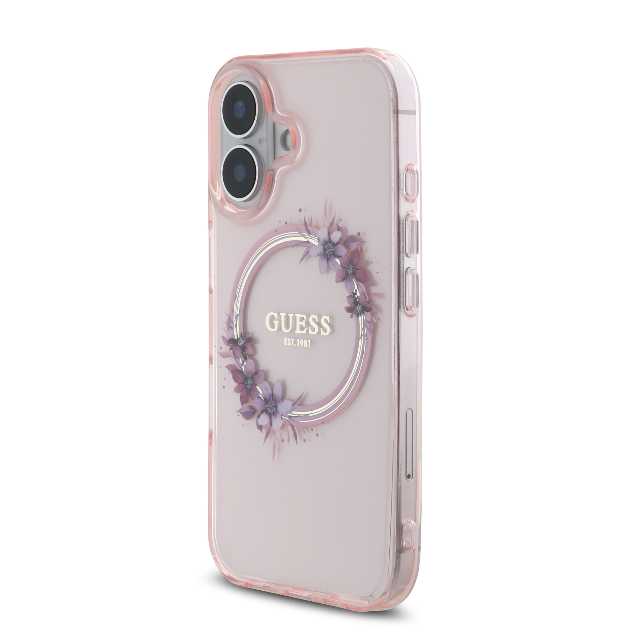 Guess Magsafe “Flower Wreath” Hard Case Θήκη προστασίας από σκληρό πλαστικό – iPhone 16 (Ροζ – GUHMP16SHFWFCP)